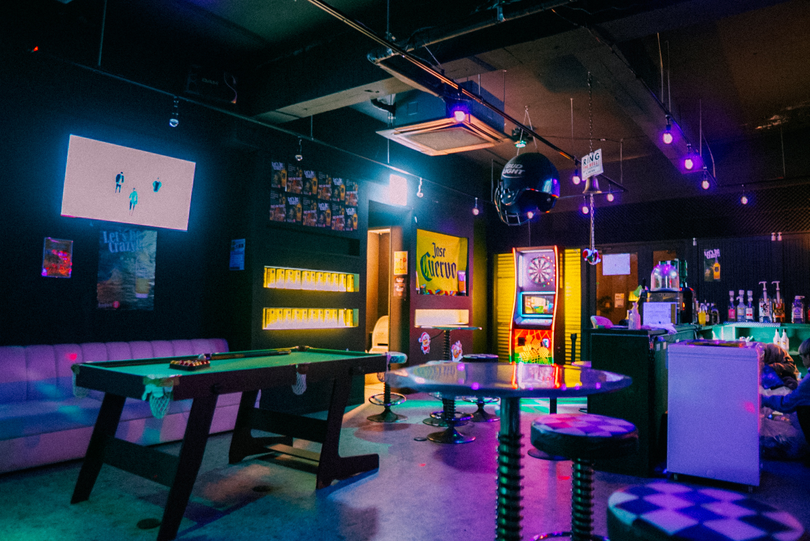 BARVELは沖縄市コザにある新感覚のアミューズメントバー。 大人が本気で遊べる空間をご用意しています。